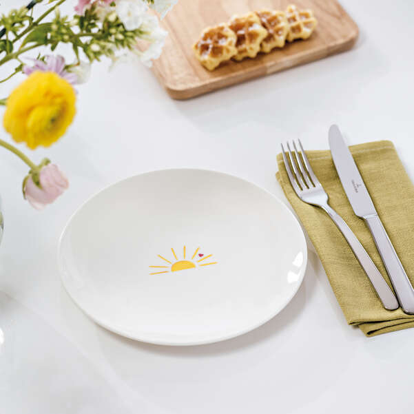 The breakfast plate features a beautiful sun pattern and can be ideally combined with the matching cup and cereal bowl - for a good start to the day