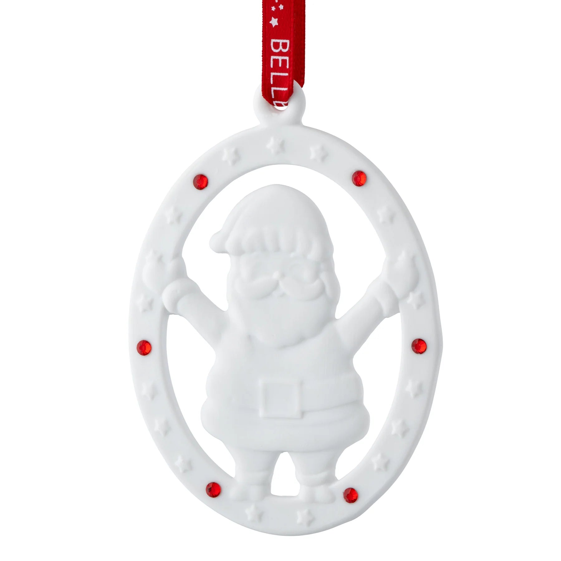 The Jolly Santa Ornament is crafted from porcelain and features delicate embossing & red gemstones. This ornament comes beautifully displayed in a hand-crafted gift box, ideal for the perfect token gift.