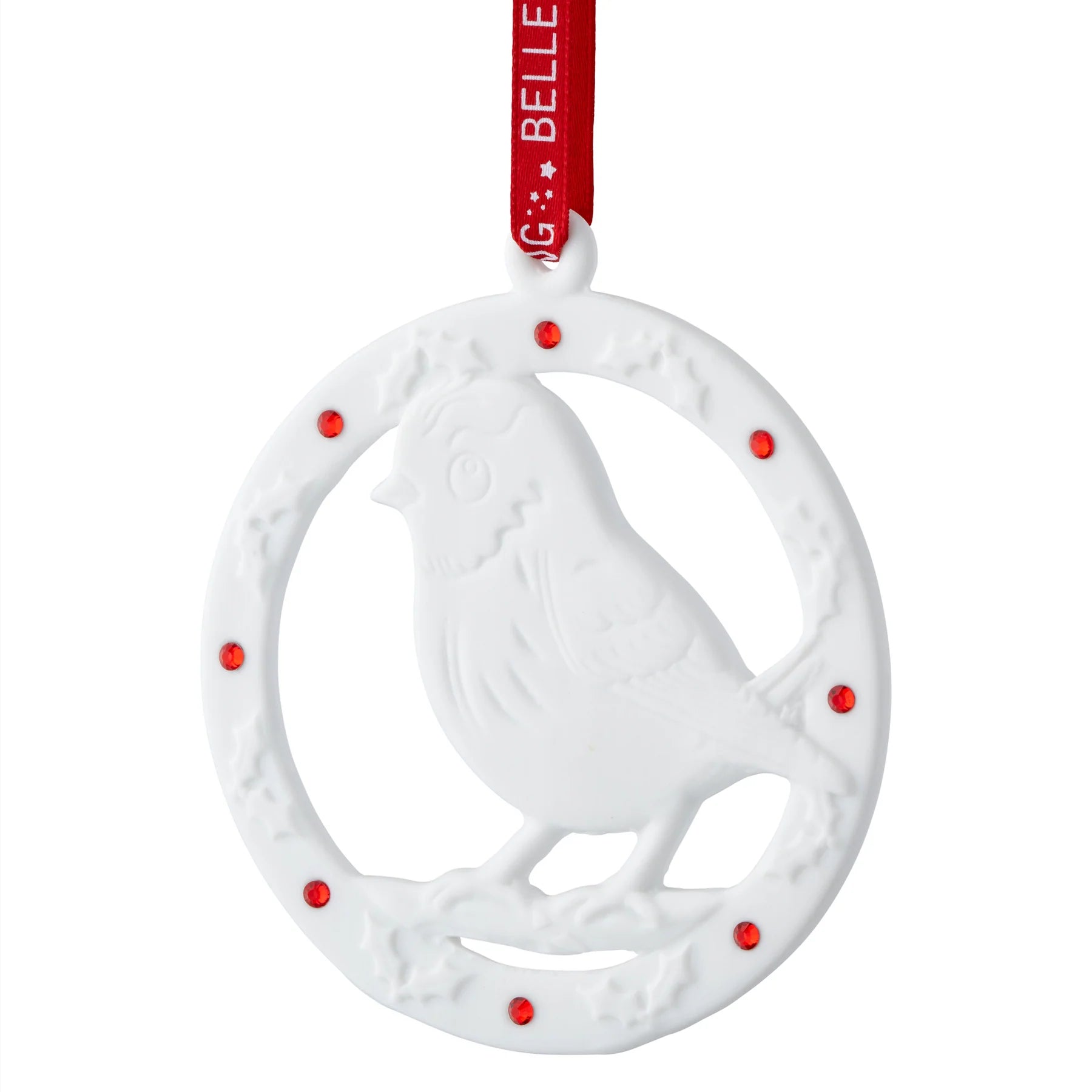 The Robin Ornament is crafted from porcelain and features delicate embossing & red gemstones. This ornament comes beautifully displayed in a hand-crafted gift box, ideal for the perfect token gift.