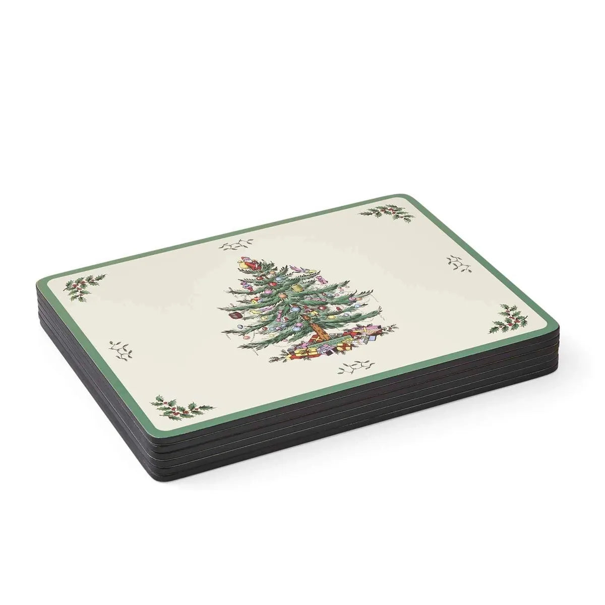 Give everyone their own special spot at the table with this set of six placemats from Spode's Christmas Tree range. Printed with the iconic Christmas Tree design, they can be combined with the corresponding tableware to create a truly enchanting festive table spread. Backed with hardwearing cork to protect your table, they also have a fully sealed top that's resilient against stains and heat resistant up to 100C. Don't forget to add the matching coasters to complete the look.
